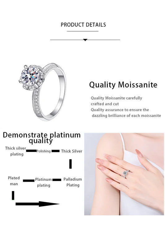 Women Wedding Jewelry 1CT Moissanite Ring Pass Diamond Test S925 Sterling Silver Finger Band Fashion Birthday Gift
