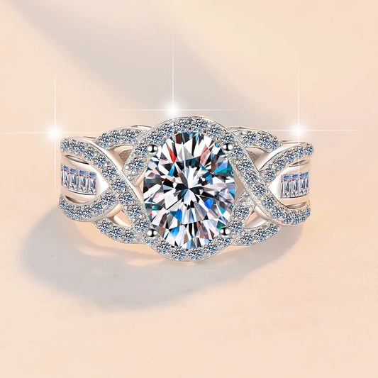 Selling Moissanite 925 Sterling Silver Ring D Color VVS 2 Carat Oval Diamond Finger Band GRA Certified Fashion Jewelry