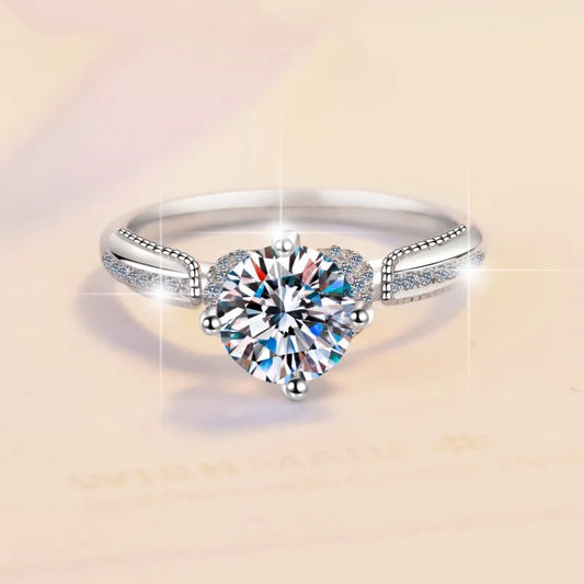 S925 Sterling Silver Moissanite D Color Round 1CT Brilliant Diamond Ring Women Finger Band Wedding Birthday Gift Fashion Jewelry
