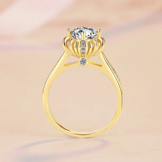 Real 1CT 6.5mm Moissanite Ring Brilliant DiamondS 925 Sterling Silver Plated 18K Gold Finger Band Women's Fashion Jewelry