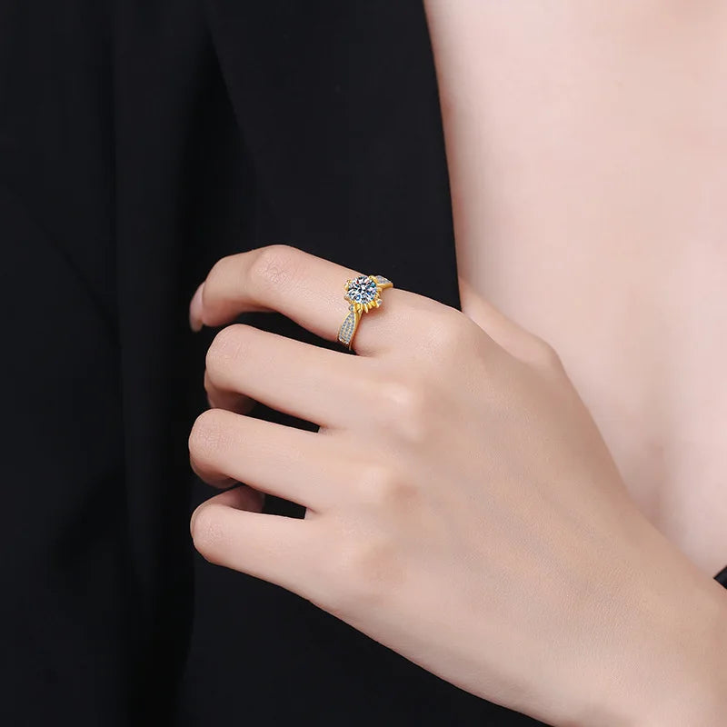 Real 1CT 6.5mm Moissanite Ring Brilliant DiamondS 925 Sterling Silver Plated 18K Gold Finger Band Women's Fashion Jewelry